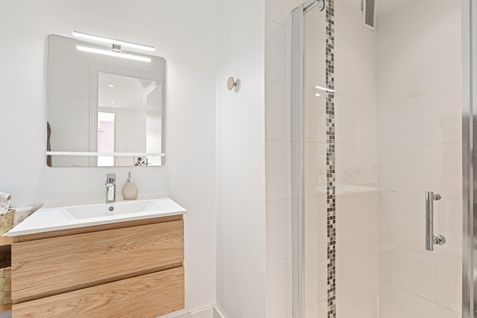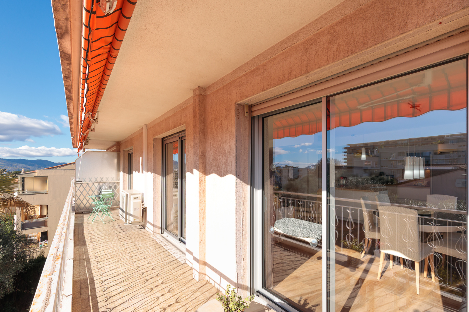 Très lumineux grâce à sa double exposition Sud Est, il offre une entrée ouvrant sur un spacieux salon séjour avec cuisine américaine aménagée et équipée, le tout donnant accès à une première terrasse exposée Sud.