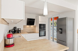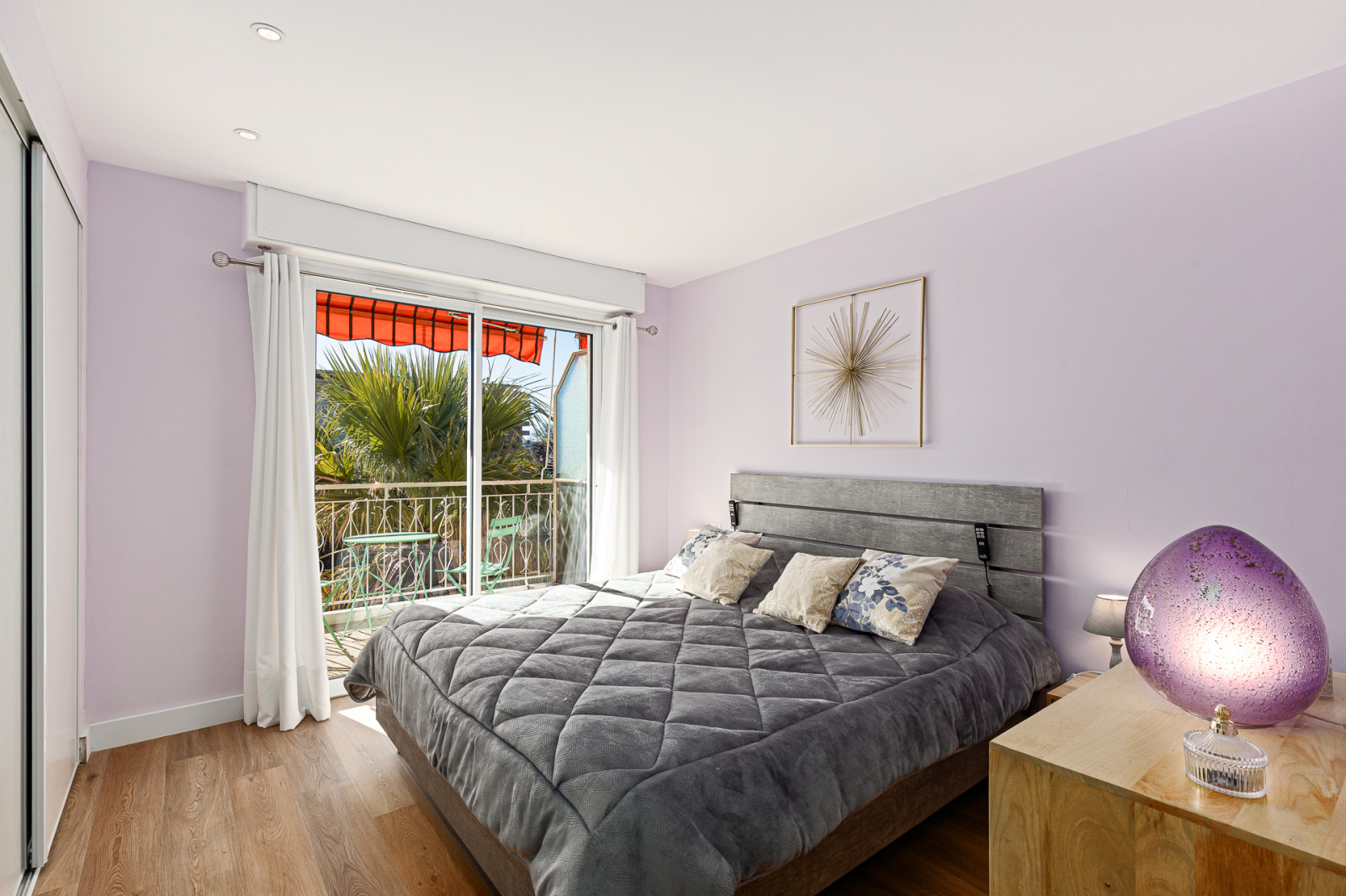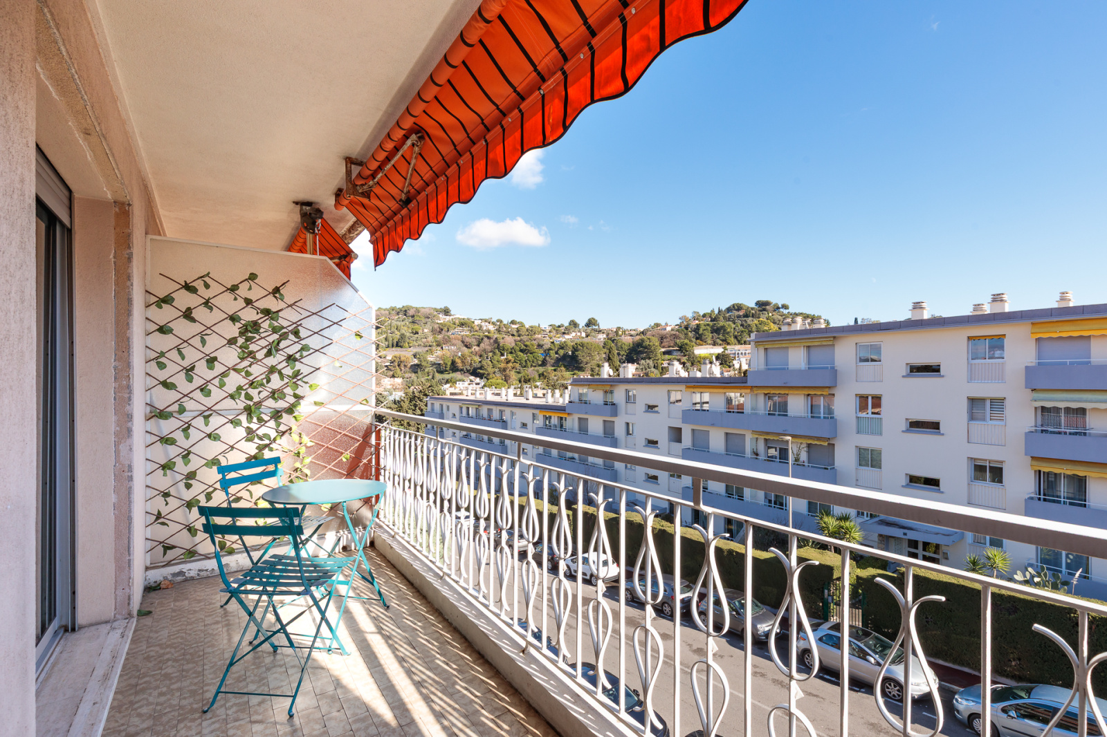 Deux chambres confortables avec placards, dont une avec accès à la terrasse Sud et la seconde ouvrant sur une terrasse Est, également accessible depuis la cuisine. Salle de douche moderne, WC indépendant et couloir avec rangements.