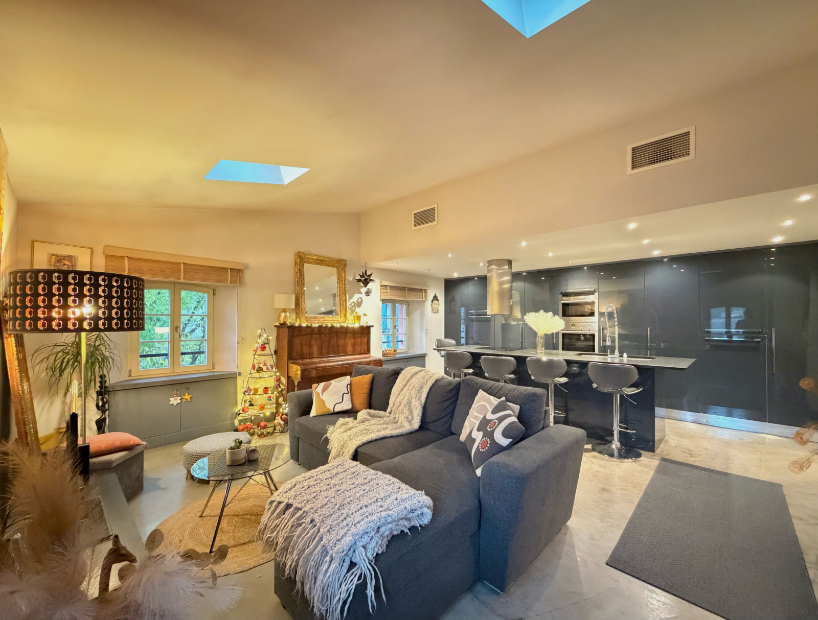 Ce superbe duplex rénové avec goût offre un cadre de vie unique : volumes généreux, prestations modernes, charme de l’Ancien et emplacement privilégié à deux pas de la place principale de Mouans-Sartoux.