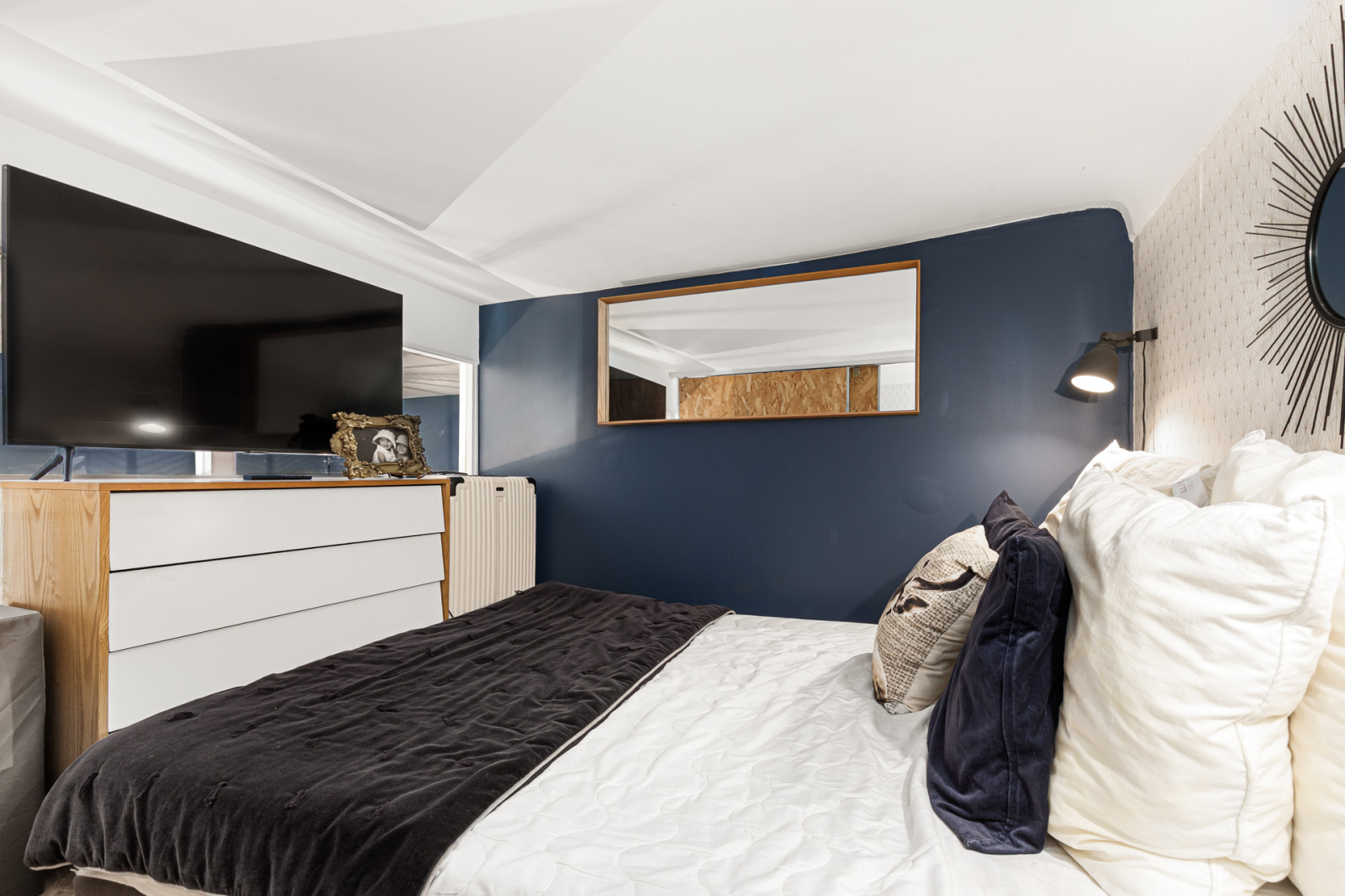 La chambre principale, dotée d’un dressing sur mesure, s’accompagne d’une salle de douche moderne