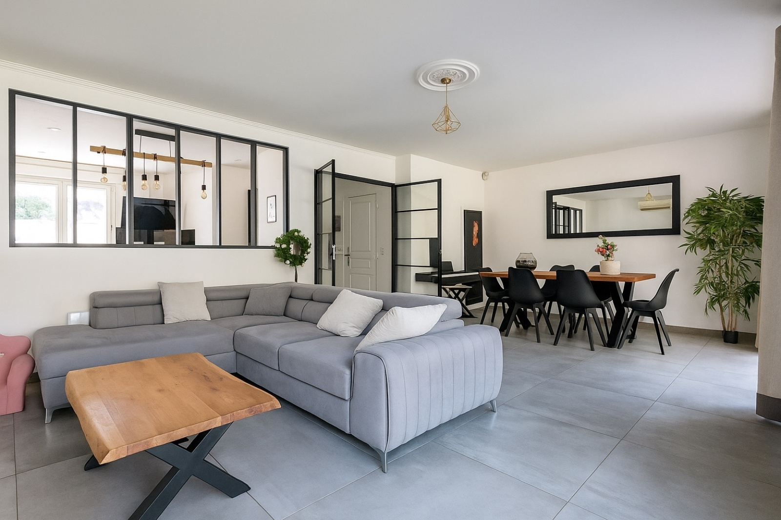 La maison s’ouvre sur une belle pièce de vie, où le séjour communique harmonieusement avec une cuisine semi-ouverte, idéale pour le quotidien comme pour recevoir. L’espace nuit propose trois chambres, dont une suite parentale, assurant confort et intimité à toute la famille.
