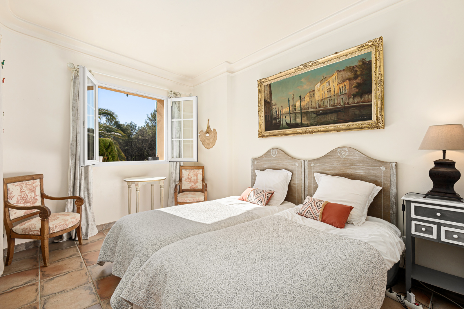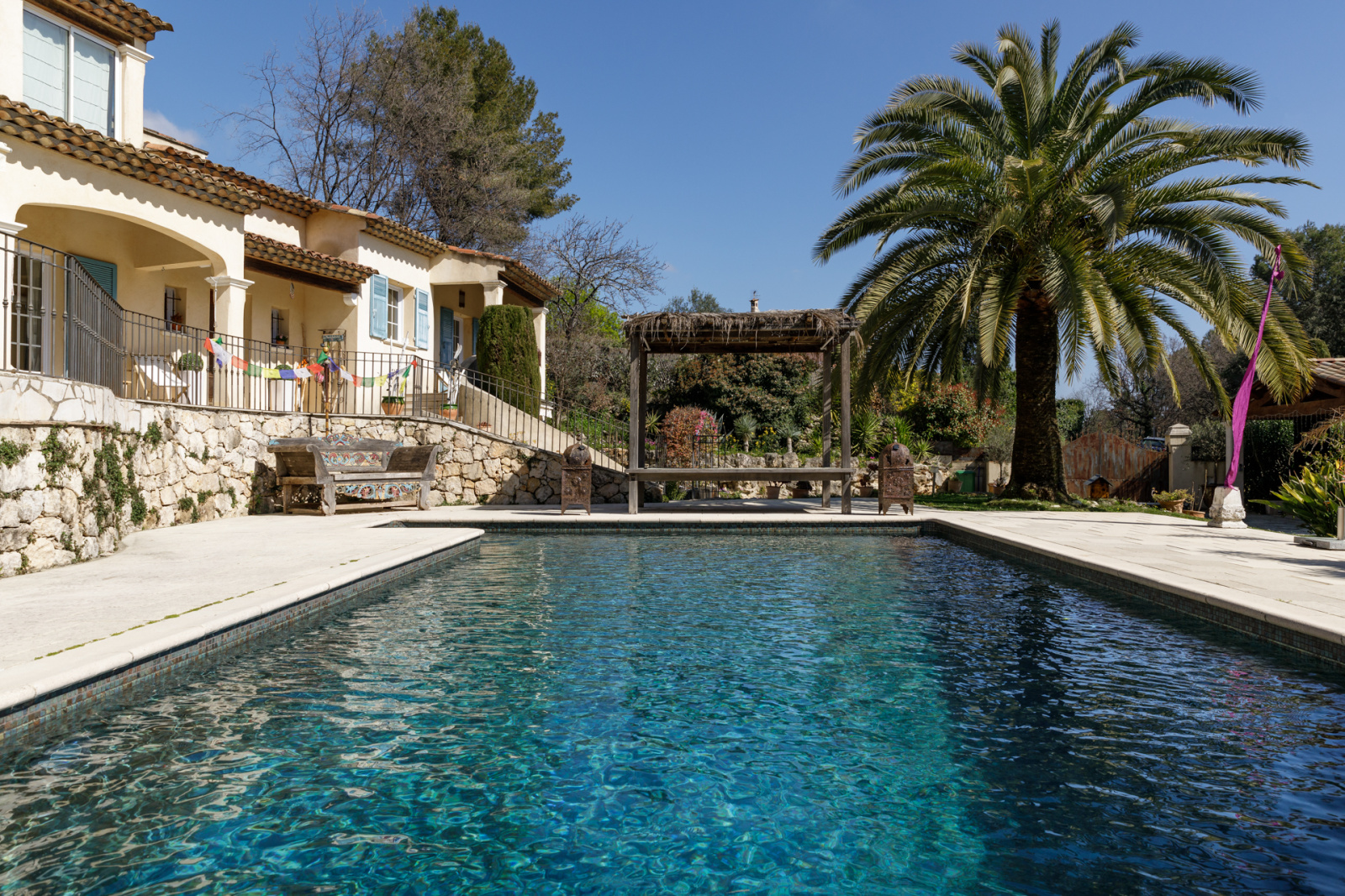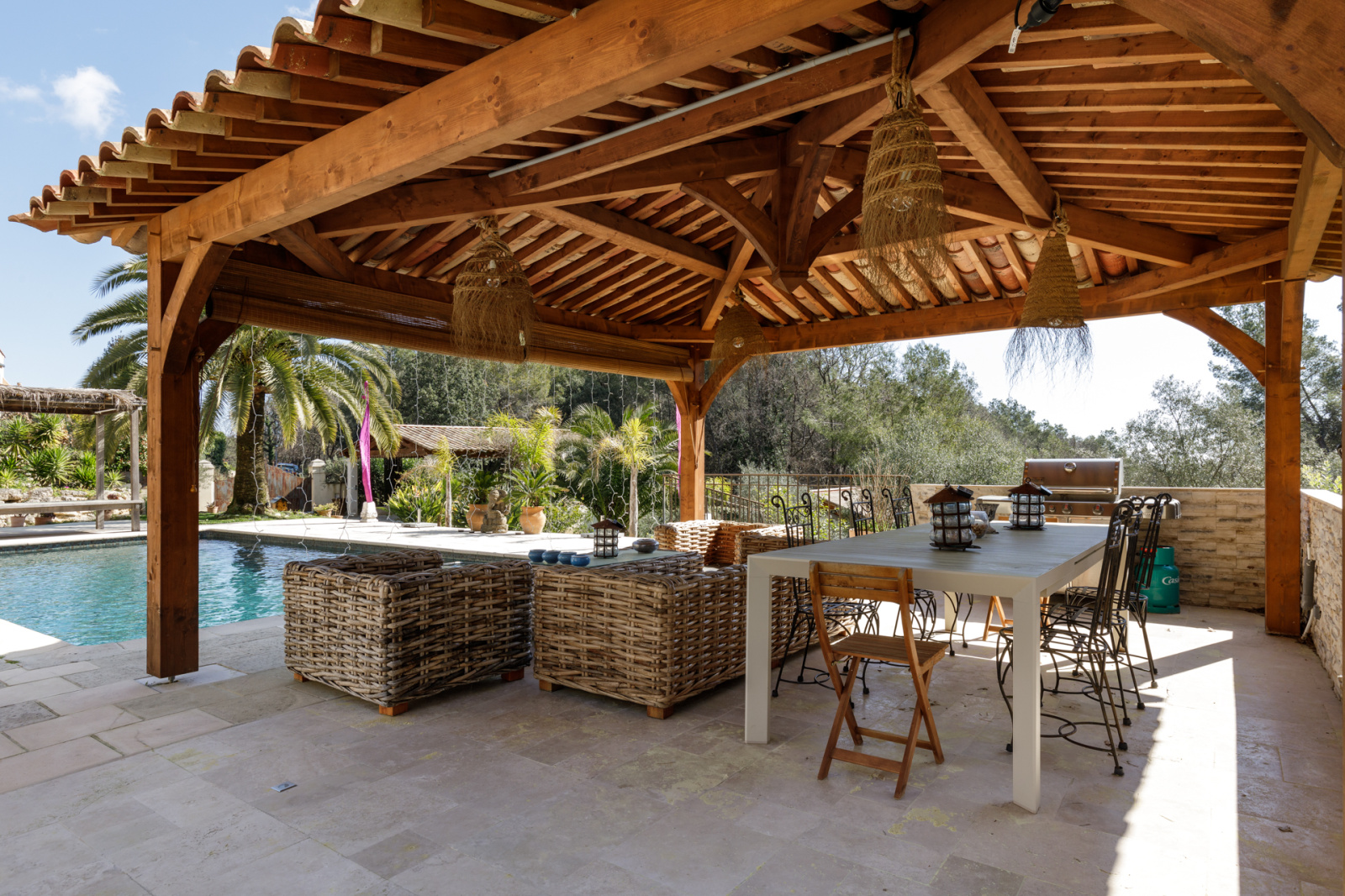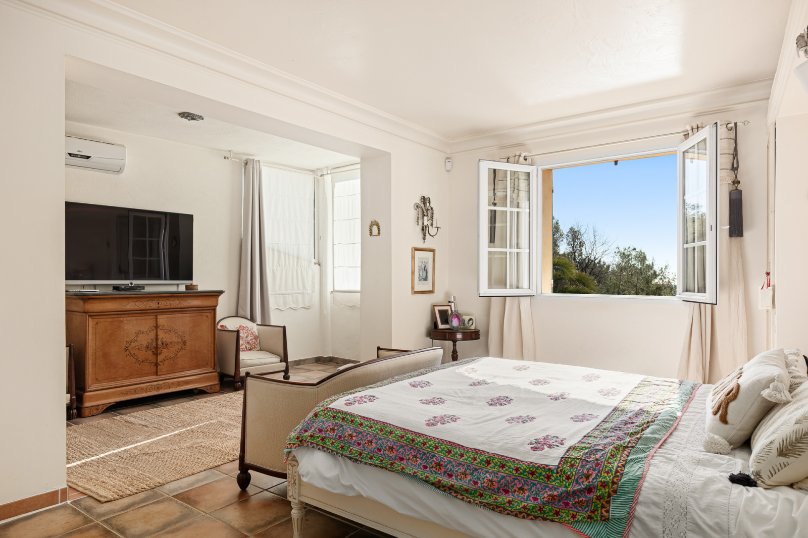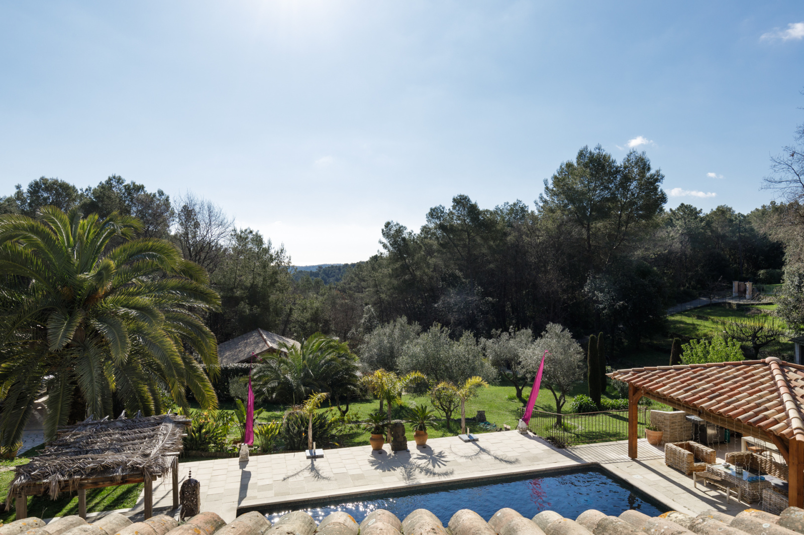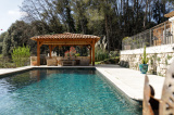 L'extérieur est tout aussi séduisant, avec un jardin méditerranéen soigneusement entretenu, une piscine bordée de vastes terrasses ainsi qu'un pool-house.